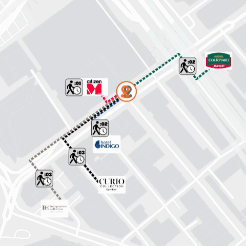 Adjacent to rapid transit station with one-seat service to within a ten-minute walk of more than 80,000 people employed in the life sciences. A 12-minute estimated maximum ride to Logan International Airport in time for British Airways Flight 212; compares with 30+ minutes for peer group properties. Within a five-minute walk, there at least two eateries with vegan, halal and sald lunch offerings.